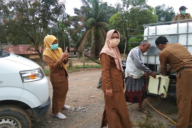 Di Rokan Hilir persis di kawasan Tanah Putih, warga juga berinisiatif melakukan penyemprotan sendiri.