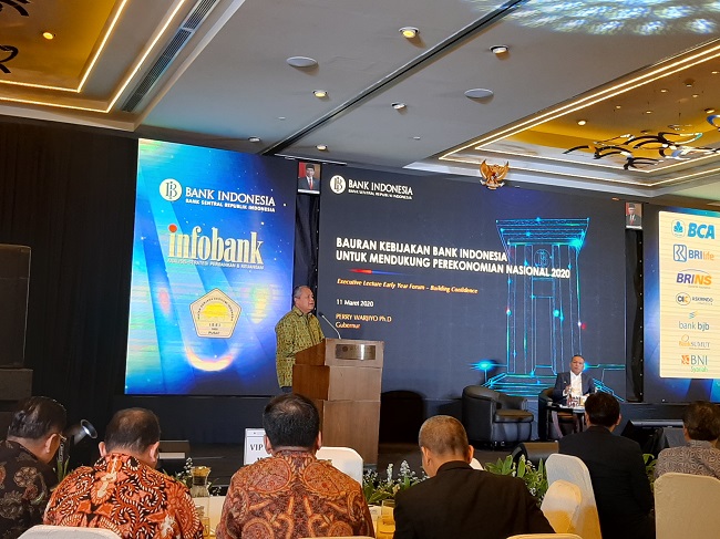 Jakarta, Gatra.com - Gubernur Bank Indonesia (BI), Perry Warjiyo, optimistis pertumbuhan ekonomi Indonesia pada tahun 2020 akan lebih besar dari 2,3%. Hal itu dapat terjadi jika berbagai stimulus ekonomi yang dikeluarkan pemerintah dan langkah-langkah stabilisasi Bank Sentral untuk tetap menjaga stabilitas nilai tukar rupiah berjalan dengan baik.