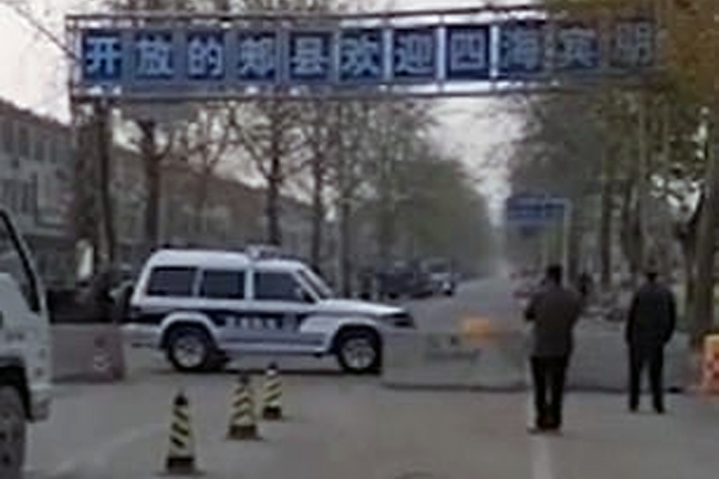 Rekaman media sosial dimaksudkan untuk menunjukkan blokade jalan sedang dilakukan di Kabupaten Jia setelah pejabat memerintahkan penutupan baru di tengah kekhawatiran untuk krisis coronavirus baru. Para pejabat menegakkan tindakan tegas untuk mencegah wabah terjadi. Semua penghuni harus memakai masker.