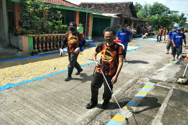 Ketua MPC Pemuda Pancasila (PP) Kabupaten Karanganyar Disa Ageng Aliven mengatakan, dirinya mengerahkan anggotanya di komando inti (Koti) Desa Kebak untuk menyemprot disinfektan perkampungan para petani.