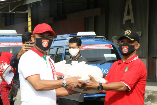 Bantuan diserahkan kepada penerima melalui perangkat wilayah. Pada tahap pertama diserahkan sebanyak 25.416 paket.