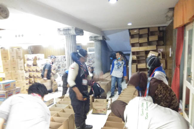 Dia menjelaskan, setiap harinya di siapkan 100 anggota yang terbagi dalam dua shift. Setiap shiftnya relawan bisa mengepak kardus sebanyak 1500 paket. "Perkiraan untuk kegiatan packing akan dilakukan selama 2 Minggu " kata Annur