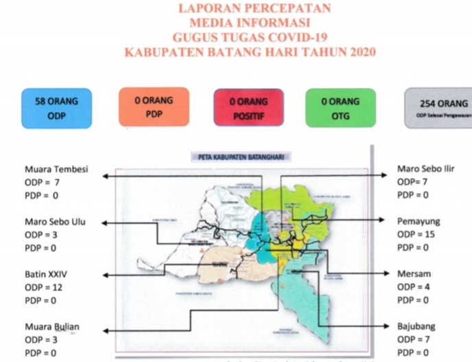 Rilis resmi diterima Gatra.com melalui pesan di group WhatsApp SIAGA BENCANA BATANGHARI, jumlah ODP COVID-19 dilaporkan petugas Posko BPBD M. Tesar Umala.