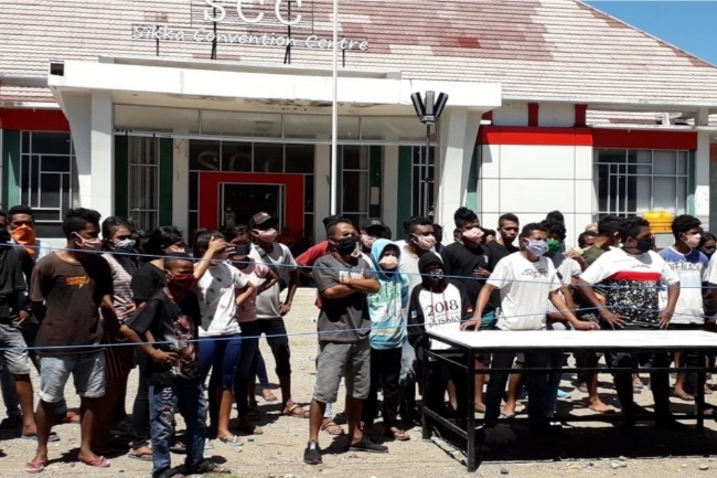 Sikka, Gatra.com - Puluhan warga Kabupaten Sikka Provinsi Nusa Tenggara Timur (NTT) yang sedang menjalani masa karantina di Convertion Centre ( SCC) setempat, melakukan aksi protes minta segera dipulangkan ke kampung mereka masing –masing, Rabu (22/4). Di depan gedung SCC mereka semua membawa serta tas sambil berteriak minta dipulangkan.