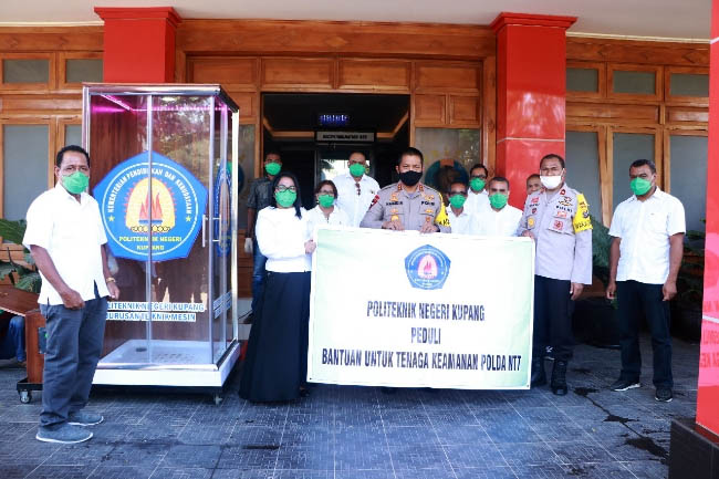 Kapolda NTT Irjen Hamidin menyampaikan ucapan terimakasih atas bantuan yang diberikan oleh Politeknik Negeri Kupang berupa bilik disinfektan untuk digunakan oleh anggota Polri sebelum melaksanakan tugas.