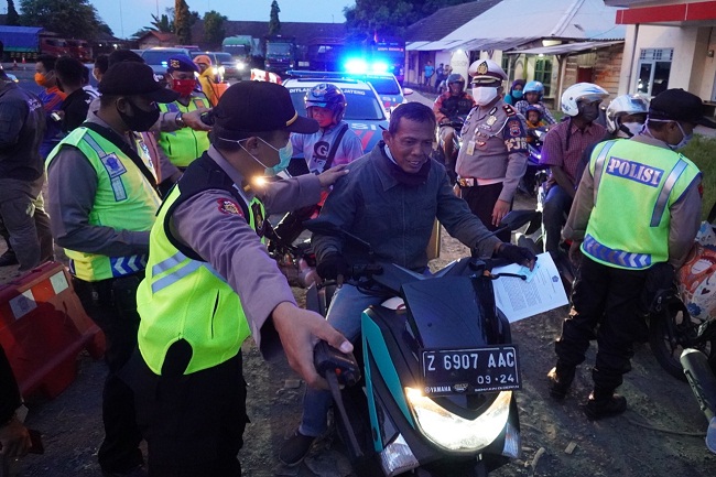 Brebes, Gatra.com - Kebijakan larangan mudik Lebaran 2020 diberlakukan untuk semua moda transportasi. Tidak hanya mobil, pemudik sepeda motor pun akan diminta diputar balikkan jika nekat mudik.