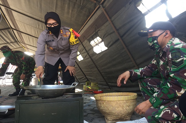 Tegal, Gatra.com - Polres Tegal Kota dan Kodim 0712/Tegal, Jawa Tengah mendirikan dapur umum untuk memberikan bantuan makanan kepada warga yang terdampak Covid-19. Bantuan makanan antara lain akan diberikan kepada warga yang menjadi orang dalam pemantauan (ODP).