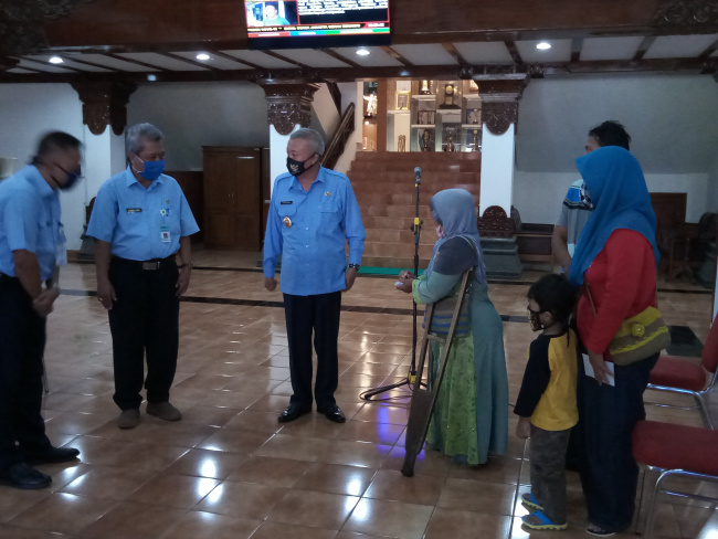 Hari ini, di gedung Pemkab Bantul, Bupati Bantul Suharsono menyerahkan bantuan bahan pokok dan uang tunai untuk Himpunan Wanita Disabilitas Indonesia (HWDI). Bantuan ini hasil pengumpulan dana ASN Bantul.