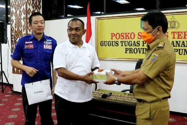Bandar Lampung, Gatra.com - Peduli dengan penanganan pandemi Covid-19 di Lampung, seorang petani minyak kayu putih asal Bandar Jaya Lampung Tengah menyerahkan 50 paket olahan pohon Eucalyptus jenis globulus kepada Tim Gugus Tugas Penanganan Covid-19 Lampung.