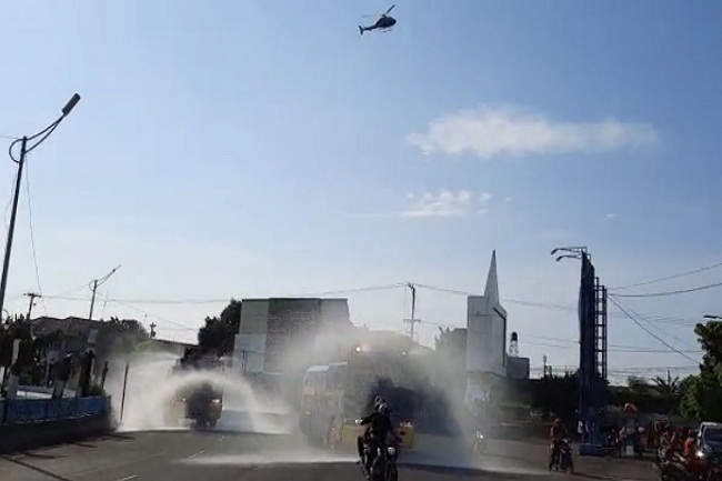 Wali Kota Tegal Dedy Yon Supriyono memantau langsung penyemprotan massal itu dengan menaiki helikopter bersama Kapolres Tegal Kota AKBP Rita Wulandari dan Dandim 0712/Tegal Letkol Inf Richard Arnold YS. Helikopter yang dinaiki ketiganya tampak berputar-putar di langit Kota Bahari selama penyemprotan.