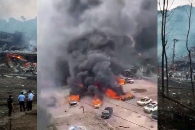 Kantor berita Cina, Xinhua melaporkan Minggu bahwa ada ledakan kedua terjadi ketika truk itu jatuh menimpa bengkel di dekat jalan tol setelah ledakan pertama.