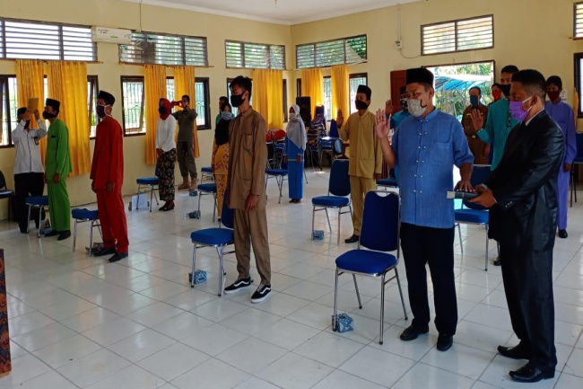 Dengan mengedepankan protokol kesehatan penanganan virus corona, 585 petugas PPS tadi dilantik di masing-masing kantor camat.
