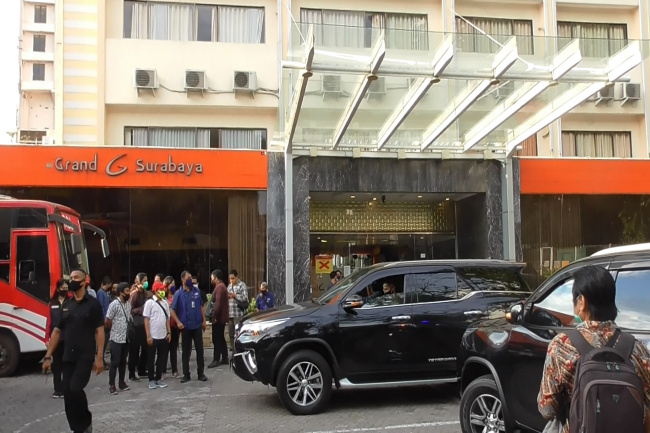 Pemerintah menunjuk Hotel Grand Surabaya Jl. Pemuda No.21, Embong Kaliasin, menjadi salah satu tempat tenaga kesehatan melepas lelah usai menangani pasien Covid-19. Sejumlah pejabat dari pemerintah pusat sempat meninjau hotel tersebut Minggu kemarin (5/7).