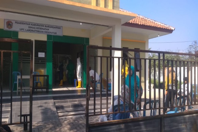 Karanganyar, Gatra.com - Sebanyak 30 orang Karanganyar, Jawa Tengah dijemput tim gugus tugas percepatan penanganan Covid-19 Kabupaten Karanganyar. Mereka dites swab di UPT Laboratorium Kesehatan.