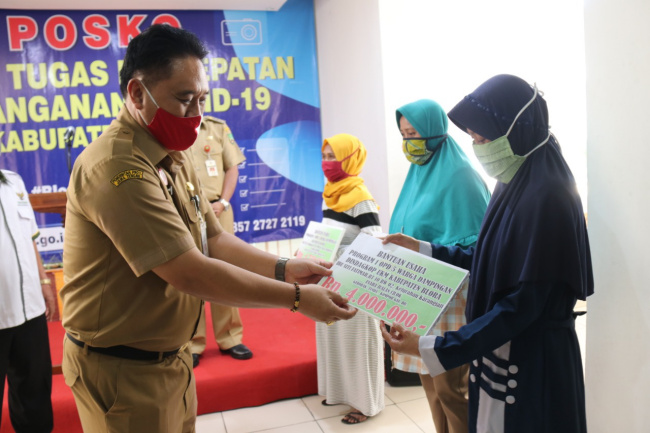 “Dengan adanya bantuan ini, kita harapkan masyarakat yang kurang beruntung dapat bangkit secara ekonomi di tengah pandemic Covid-19. Saya minta para penerima bantuan dapat memanfaatkannya dengan baik, sehingga usaha yang dijalankan pun berhasil. Nanti kalau berhasil, akan saya tambah bantuannya,” kata Bupati.