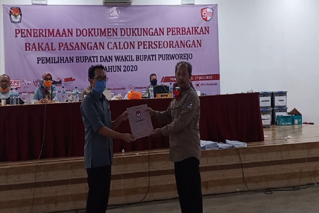 "KPU telah melakukan pengecekan dan penelitian dokumen serta jumlah sebaran dukungan di 16 Kecamatan sejak tanggal 27 Juli pukul 23.29 WIB hingga 28 Juli pukul 21.30 WIB. Jumlah asli formulir B1.1 KWK berjumlah 43.020. Yang memenuhi syarat (MS) 32.740, tidak lengkap atau dianggap TMS 10. 280," kata Ketua KPU Purworejo Dulrokhim Selasa malam (28/7).