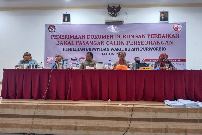 Jalan bakal pasangan calon (Bapaslon) jalur perseorangan dalam Pemilihan Kepala Daerah (Pilkada) 2020 Purworejo tak berlangsung mulus. Perbaikan dokumen pasangan Slamet Riyanto-Suyanto ditolak Komisi Pemilihan Umum (KPU). Sengketa terus berlanjut.