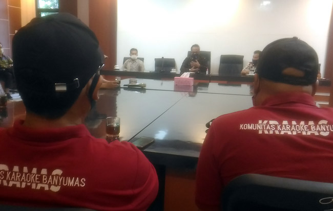 Purwokerto, Gatra.com - Belasan anggota Komunitas Karaoke Banyumas (Kramas) mendatangi kantor Dinas Pemuda Olahraga Budaya dan Pariwisata (Dinporabudpar) Banyumas, Selasa (4/8). Mereka meminta Pemerintah Kabupaten Banyumas memberikan izin usaha dan tempat hiburan karaoke untuk beroperasi kembali.