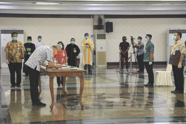 Peringatan ini disampaikan Ganjar saat melantik 511 pekabat di lingkungan Pemerintah Provinsi (Pemprov) Jateng di Gedung Gradhika Bhakti Praja, Semarang, Jumat (7/8). Jalannya pelantikan yang dihadiri Wakil Gubernur Taj Yasin Maemoen dengan menerapkan protokol kesehatan dilakukan secara virtual.