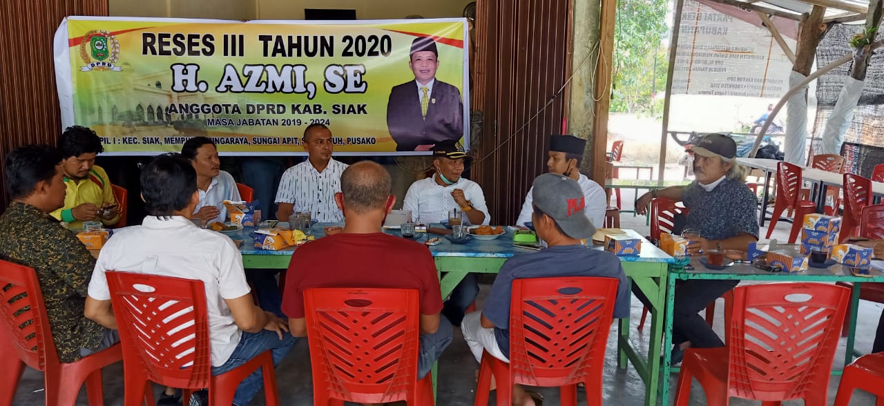 Siak, Gatra.com - Ketua DPRD Siak, Riau, Azmi tetap melaksanakan reses kendati pelaksanaannya tidak seperti biasa lantaran saat ini masih pandemi Covid-19. Jika biasanya, diadakan di satu tempat dengan mengumpulkan banyak orang, reses kali ini dilakukan tanpa mengumpulkan banyak orang.