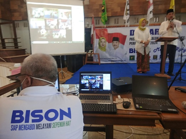 Selain menggelar secara langsung, deklarasi yang dihadiri masing-masing Ketua DPC/ DPD Partai pengusung juga berlangsung secara virtual dengan menempatkan perangkat elektronik yang menyiarkan secara langsung melalui internet.