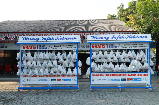 Warung infaq yang baru saja diresmikan oleh Wakil Bupati Kebumen, Arif Sugiarto (18/9) itu bertempat di halaman Kantor PDAM Tirta Bumi Sentosa. "Sudah menjadi kewajiban pemerintah daerah melalui BUMD untuk hadir melayani masyarakat. Dalam kerangka itulah, warung infaq ini diharapkan mampu membantu meringankan beban masyarakat. Juga menumbuhkan kebersamaan, kepedulian masyarakat untuk saling membantu dan mendukung," ujar Arif.