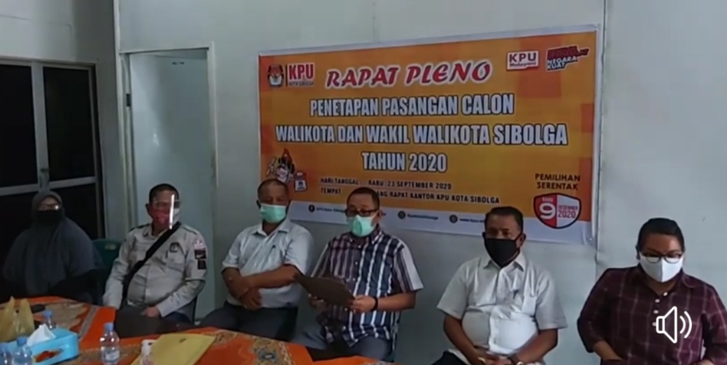 Rapat pleno KPU Sibolga tentang penetapan pasangan calon Wali Kota dan Wakil Wali Kota Sibolga dalam pemilihan Kepala Daerah (Pilkada) Sibolga 2020 itu dipimpin Khalid Walid selaku Ketua KPU Sibolga bersama tiga komisioner lainnya, Salmon Tambunan, Afwan Nasution, dan Asa Dame Simanjuntak.