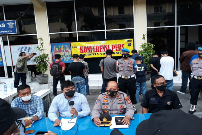 "Mereka kami amankan di lima titik berbeda Kamis sore. Empat orang kami kenakan status tersangka perusakan dan percobaan pembakaran pos polisi (di Jalan) Abu Bakar Ali," kata Riko dalam jumpa pers di Markas Polresta Yogyakarta, Jumat (9/10) petang.