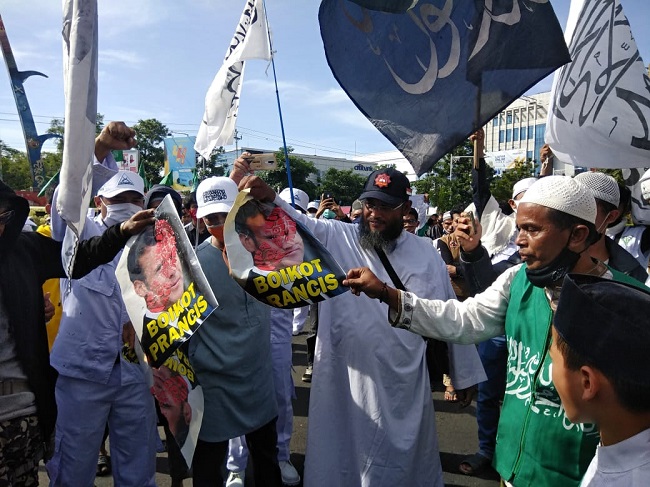 “Kasus pelecehan yang di lakukan oleh presiden perancis ini Ini lebih besar dari masalah omnibus law, oleh karena itu kami mengutuk dan melaknat Macron dan siap untuk jihad melawan Macron untuk membela nabi” kata Amir dalam orasinya.