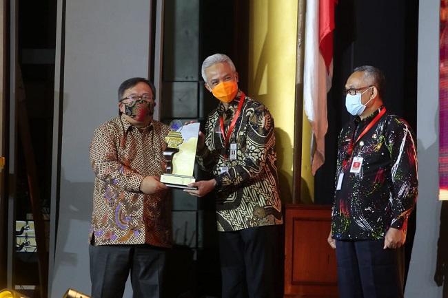 Penghargaan diserahkan langsung oleh Menteri Riset dan Teknologi Indonesia Bambang Brodjonegoro dan diterima Gubernur Jawa Tengah Ganjar Pranowo di Auditorium BJ Habibie Jalan Thamrin, Jakarta, Selasa (10/11/2020).