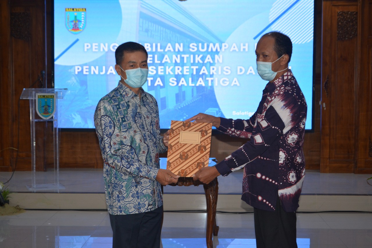 Salatiga, Gatra.com – Wali Kota Salatiga Yuliyanto mengajak Penjabat (Pj) Sekda Muthoin untuk bersama-sama menyelesaikan program RPJMD 2017-2022 dengan sebaik-baiknya. Ajakan itu disampaikan saat Pengambilan Sumpah dan Pelantikan Penjabat Sekretaris Daerah Kota Salatiga, di Ruang Kaloka Gedung Setda, Jumat (15/01) lalu.