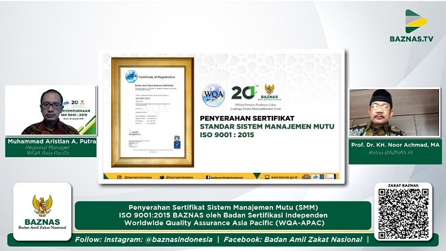 Sementara itu, Muhammad Aristian mengatakan WQA bangga dapat memberikan sertifikat ini kepada BAZNAS sebagai pengelola zakat resmi satu-satunya milik pemerintah.