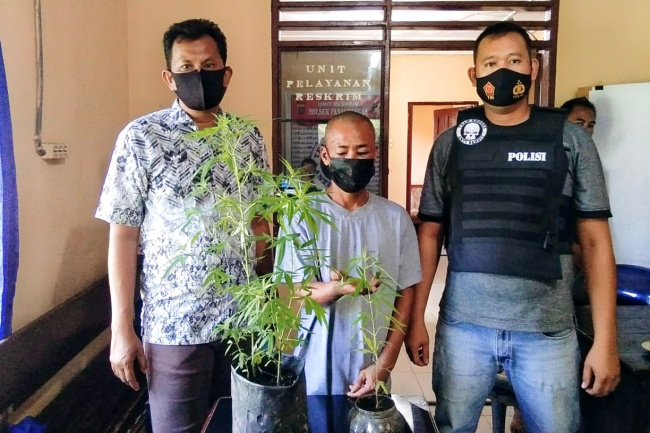 Pasalnya, pria yang kesehariannya berprofesi sebagai penarik Ojek itu, kedapatan menanam ganja untuk asupan pribadi. Saat digrebek, 4 batang pohon ganja hidup yang ditanam pada polibek dan kemasan botol plastik, ditemukan dari dalam kamar mandi.