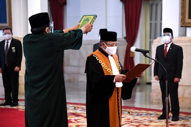 Andi Samsan Ngandro mengucapkan sumpah jabatannya tepatnya sebagai Wakil Ketua MA Bidang Yudisial. Acara ini digelar dengan menerapkan protokol kesehatan (prokes) secara ketat.