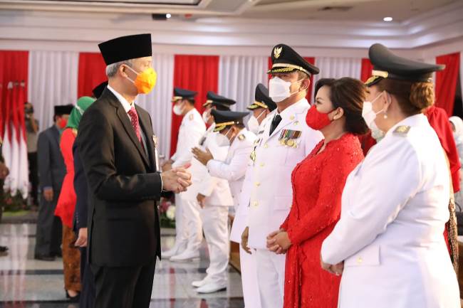 Di Gedung Gradhika Bhakti Praja Jalan Pahlawan Kota Semarang, Ganjar telah melantik 17 kepala daerah terpilih. Tak lupa dalam sambutannya, politisi PDIP ini mengutip pidato dari Presiden Ir. Soekarno yang berisi, "Jadikan deritaku ini sebagai kesaksian, bahwa kekuasaan seorang presiden sekalipun ada batasnya. Karena kekuasaan yang langgeng hanyalah kekuasaan rakyat. Dan di atas segalanya adalah kekuasaan Tuhan Yang Maha Esa".