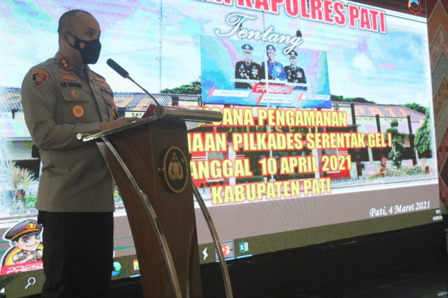 Kapolres Pati, AKBP Arie Prasetya Syafa'at mengatakan untuk mengantisipasi terjadinya kerawanan pada gelaran Pilkades pada 10 April mendatang, pihaknya telah melakukan langkah strategis diantaranya membentuk Satgas anti judi dan politik uang.