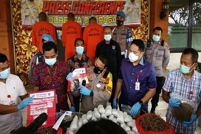 Denpasar,Gatra.com -Tiga orang pelaku tindak pidana narkotika akhirnya berhasil diringkus Polresta Denpasar.Adapu total barang haram berhasil diamankan seberat 30 kg ganja.