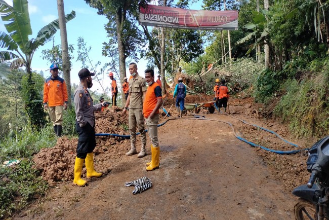 Lebih lanjut dikatakan, para sukarelawan membersihkan material yang menutup jalan dengan cara menggelondornya. Air dari sungai dipompa lalu disemburkan ke jalan. Cara yang sama juga dilakukan di tebing, namun dialirkan ke parit.