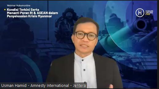 "kami menyuarakan agar asean mengirim utusan khusus ke Myanmar seperti PBB memiliki special envoy untuk berdialog dengan semua pihak sebagai sikap yang unified," ujar Direktur Eksekutif Amnesty International Indonesia Usman Hamid dalam webinar membahas situasi Myanmar, Jumat (9/4).