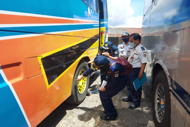 Sejumlah PO mendapat teguran karena memasang ban halus dan vulkanisir. Masa berlaku buku KIR juga diperiksa.