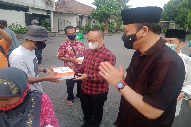 Karanganyar, Gatra.com - Rencana menggelar santap buka puasa bersama kalangan DPRD bersama koleganya batal digelar gegara larangan dari Mendagri. Akhirnya, kegiatan dialihkan berbagi menu buka puasa ke pengayuh becak, ojol dan duafa di sekitar gedung DPRD Karanganyar. Guna menghindari kerumunan, paket berbuka plus santunan dikonsep drive thru.
