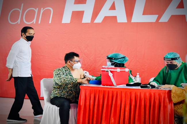 Ia pun mengucapkan apresiasi dan terima kasih terhadap semua pihak, terutama Menteri Kesehatan (Menkes) Budi Gunadi Sadikin, atas upaya terus-menerus dalam melaksanakan program vaksinasi nasional. Jokowi berharap, vaksinasi dapat menjadi pelindung dari pandemi virus corona. Kita harapkan, ini akan melindungi kita semuanya dari penyebaran Covid, tuturnya.