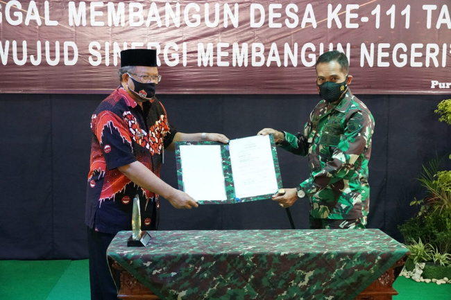 Purworejo, Gatra.com- Kegiatan TNI Manunggal Membangun Desa (TMMD) yang rutin dilaksanakan tiap tahun, telah banyak di rasakan manfaatnya oleh masyarakat serta sejalan dengan upaya pemerintah dalam percepatan dan pemerataan pembangunan. Hal itu dikemukakan oleh Asisten Administrasi dan Kesra Sekda Kabupaten Purworejo, Pram Prasetya Achmad saat membacakan sambutan bupati pada pembukaan TMMD Sengkuyung Tahap II di Pendopo Kabupaten Purworejo, Selasa (15/6).