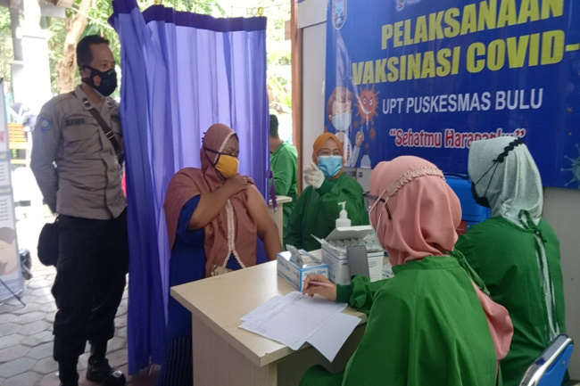 Di kantor Puskesmas Bulu misalnya, hampir tiap harinya ada ratusan warga yang datang untuk disuntik vaksin.