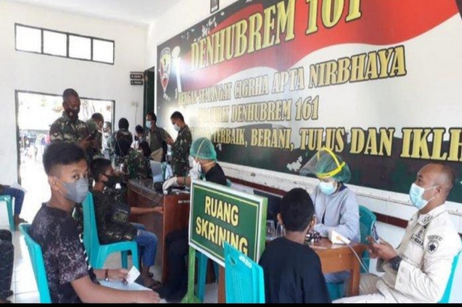 Kupang, Gatra.com- Korem 161/Wira Sakti Kupang, Sabtu 10 Juli 2021 menggelar vaksinasi perdana di NTT untuk anak –anak berusia 12 – 17 tahun. Aksi kemanusiaan ini berlangsung di lingkungan Asrama TNI Kuanino, Kupang.