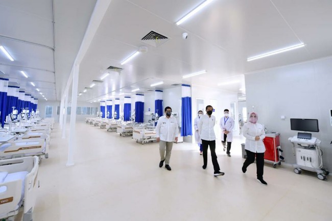 Jokowi melihat fasilitas yang dimiliki RS Modular Pertamina cukup lengkap. Dengan luas bangunan mencapai 11.300 meter persegi, rumah sakit tersebut memiliki kapasitas 305 tempat tidur, yang terdiri atas tempat tidur isolasi, tempat tidur High Care Unit (HCU), dan Intensive Care Unit (ICU).