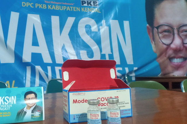 Kendal, Gatra.com - Vaksin Covid-19 Moderna mulai disuntikkan pada warga Kendal, Jawa Tengah. Penyuntikan vaksin kepada 500 warga dilakukan DPC Partai Kebangkitan Bangsa (PKB) Kendal.