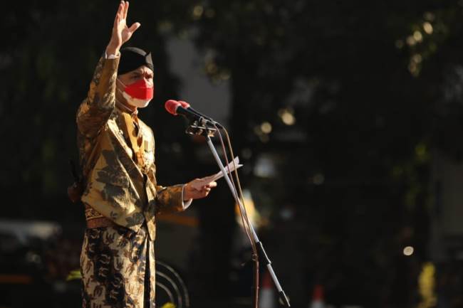 Semarang, Gatra.com - Upacara peringatan HUT ke-71 Provinsi Jawa Tengah berlangsung sederhana. Pelaksanaan upacara diikuti dengan jumlah peserta terbatas dengan protokol kesehatan Covid-19 ketat.