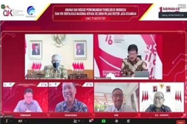Jakarta,Gatra.com- Otoritas Jasa Keuangan bersama Kementerian Komunikasi dan Informatika RI sepakat untuk memperkuat digitalisasi di sektor jasa keuangan untuk memperluas layanan dan tetap melindungi masyarakat serta mendukung pertumbuhan ekonomi nasional. Demikian kesimpulan yang muncul dalam pertemuan virtual Ketua Dewan Komisioner OJK Wimboh Santoso dan Menteri Komunikasi dan Informatika RI Johnny G. Plate mengenai Arahan dan Diskusi Perkembangan Teknologi di Indonesia dan Visi Digitalisasi Nasional Kepada Pelaku Sektor Jasa Keuangan, Jumat (27/8).