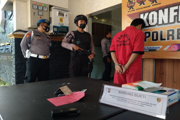 Sukoharjo, Gatra.com- Pelaku begal driver ojek online (ojol) asal Delanggu, Kabupaten Klaten, Jawa Tengah, dibekuk Resmob Polres Sukoharjo. Tersangka yakni Dino Ismail Nurofik (25) warga Kampung Bendo, Kecamatan Padas, Kabupaten Ngawi, Jawa Timur.